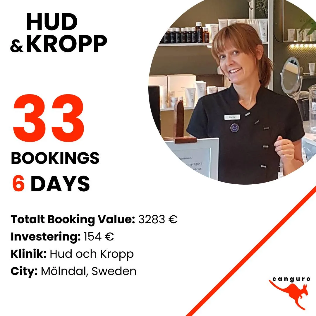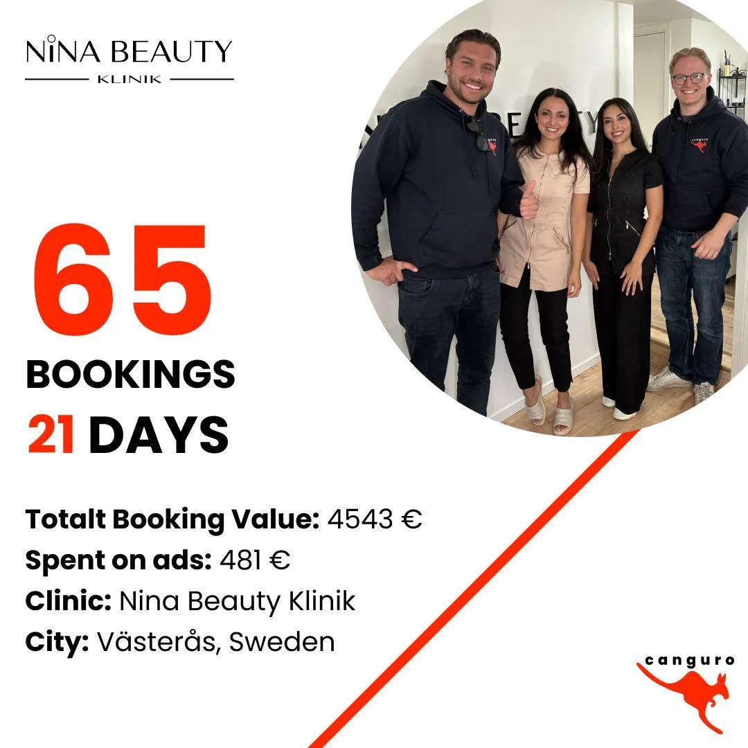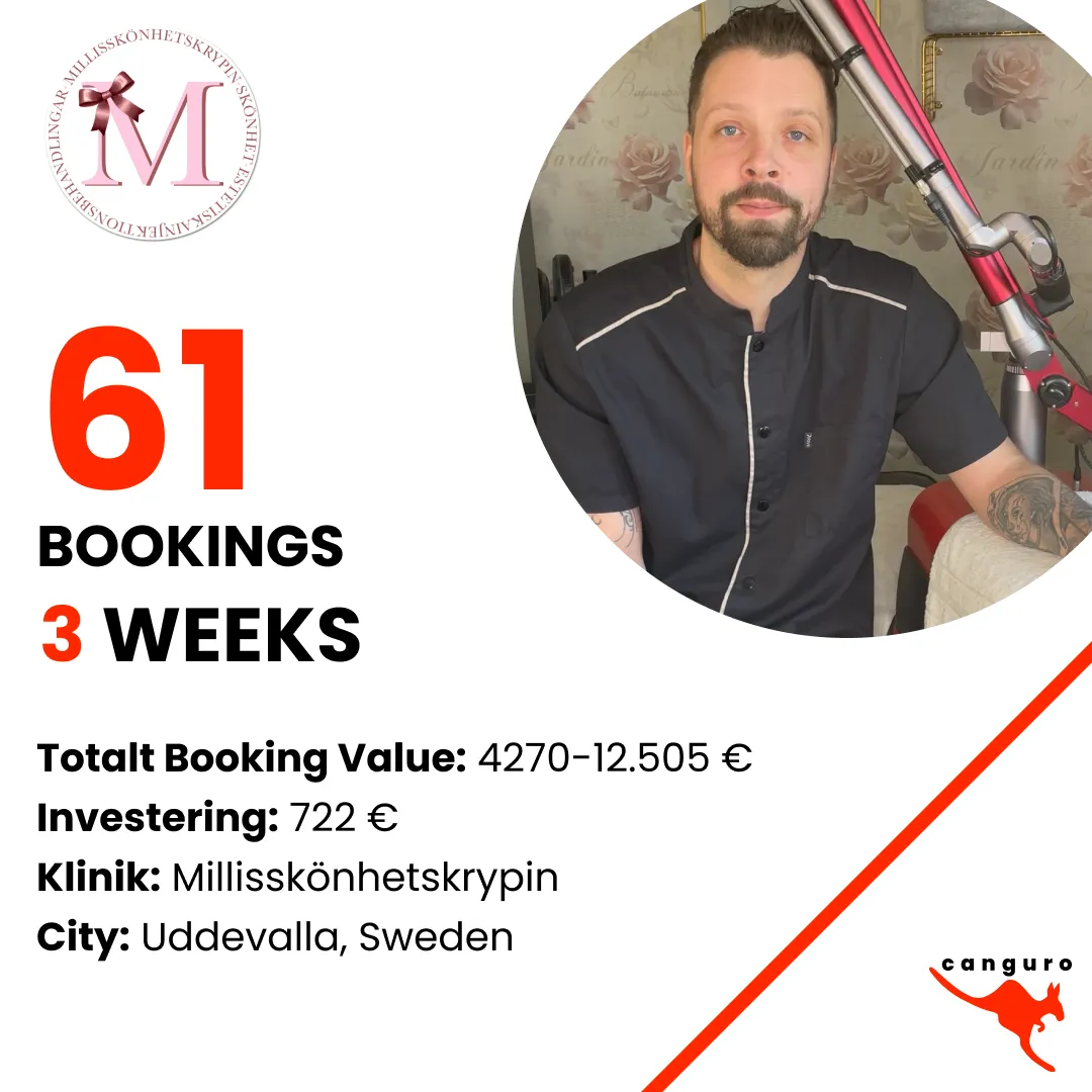 30–100 automatic bookings for your clinic next month with a system that only requires 5 minutes of your time per day, and where you don’t have to pay a single penny upfront.